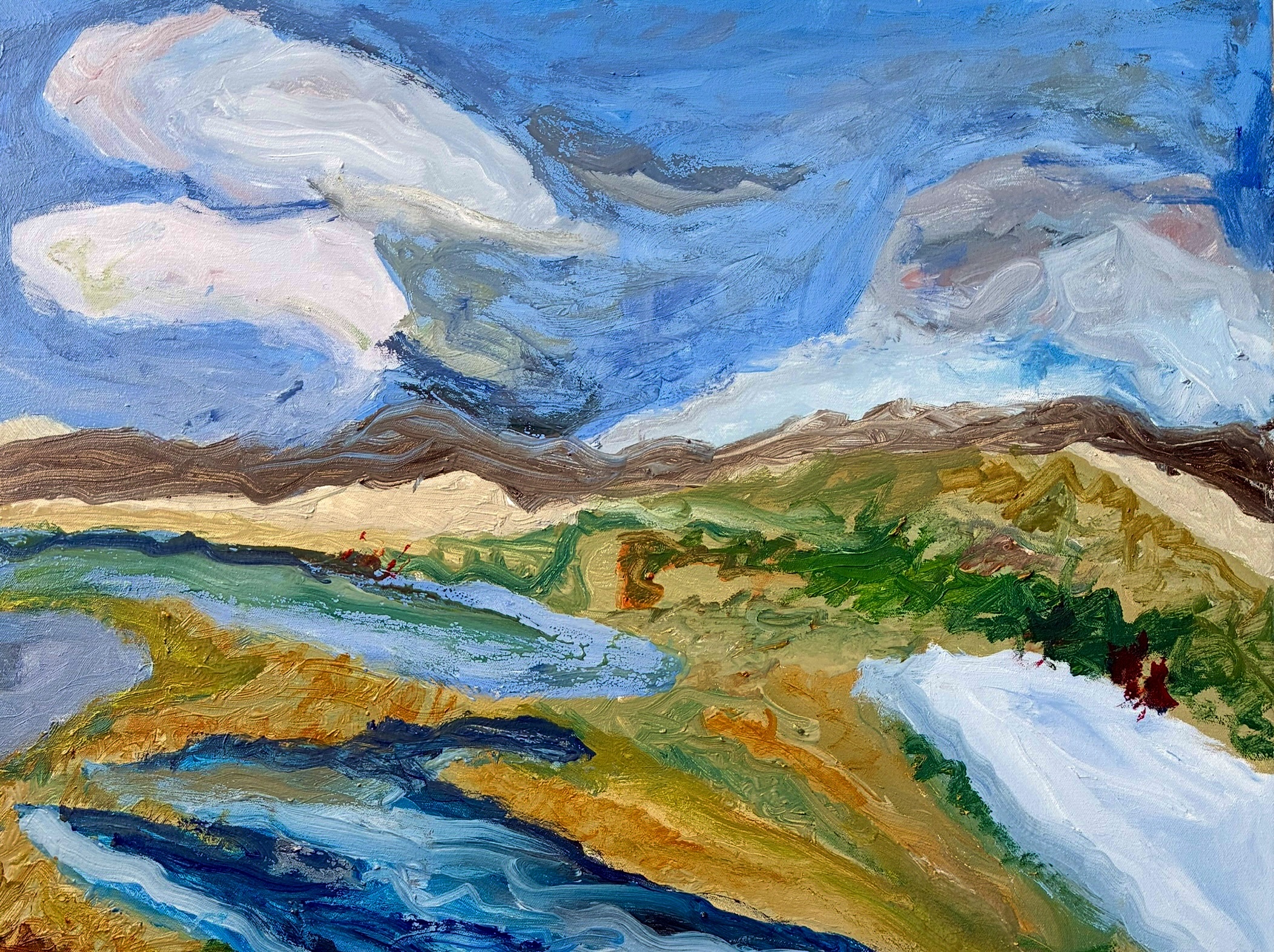 Lily Pond in the Mountains Oil on Canvas 40" x 30" Distant Vista from Lily Pond.